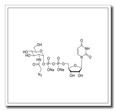 | UDP-N-azidoacetylglucosamine disodium salt is a modified nucleotide sugar derivative where UDP is linked to a glucosamine sugar moiety with an azidoacetyl group attached to the nitrogen atom. The disodium salt form ensures solubility. Similar to UDP-N-azidoacetylgalactosamine, the azidoacetyl modification allows for bioorthogonal labeling and conjugation reactions. This compound is useful in the study of glycosaminoglycan biosynthesis, protein glycosylation, and glycan-mediated cellular processes. |